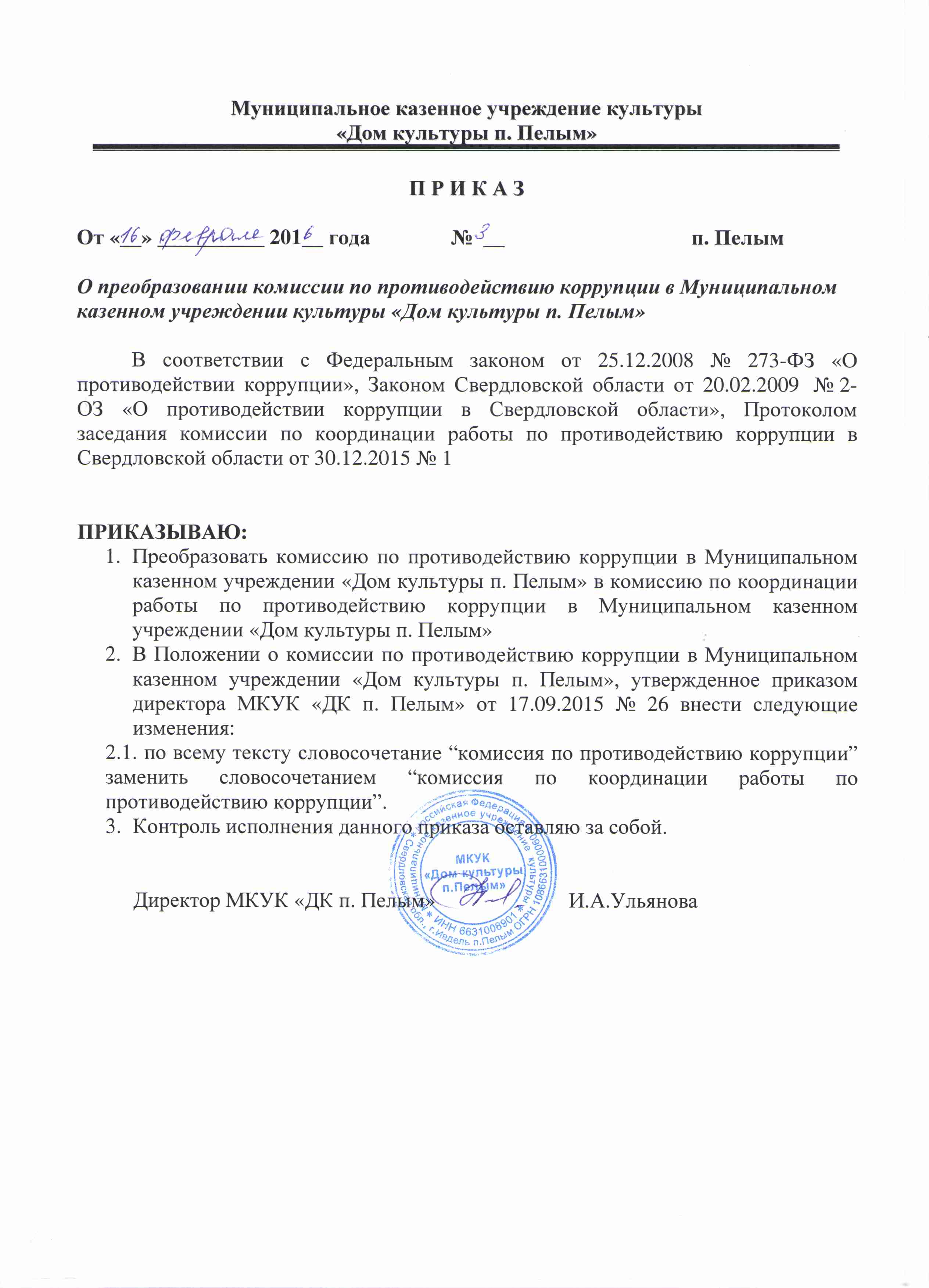 Скачать этот файл (scanlite6.jpg)Скачать[Приказ о преобразовании комиссии по противодействию коррупции в МКУК ДК п. Пелым]314 Кб